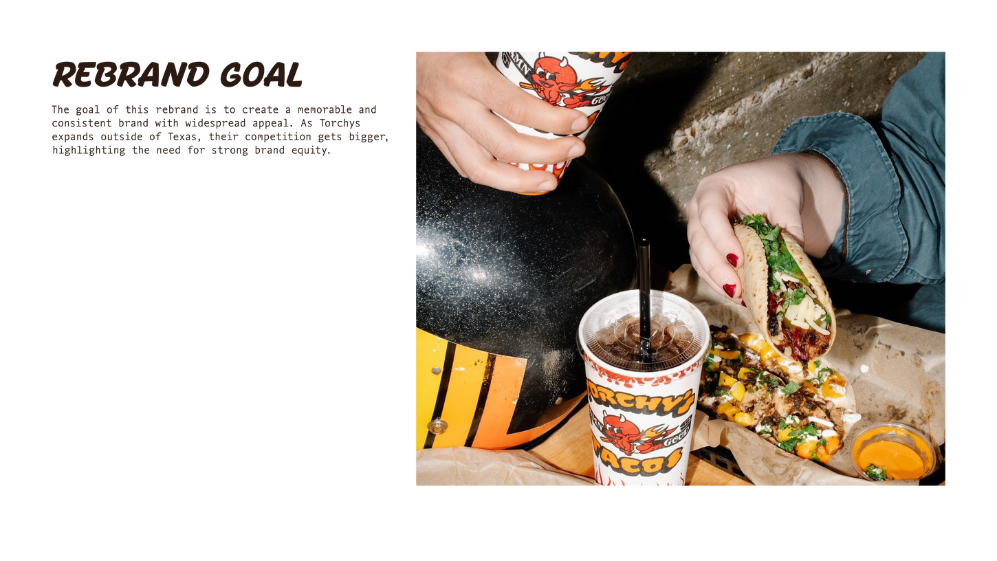 Torchys Tacos is a fast-casual Tex-Mex restaurant with a commitment to inspiring originality. Torchys offers a rotating menu of eccentric flavors inspired by the culture of ‘Keeping Austin Weird’. This rebrand focuses on the quirky nature and history of Torchys, while referencing the light religious motifs, edgy attitude, and the core mission of having “Damn Good” tacos.